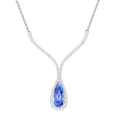 -. Feature : Blue & White Swarovski Zirconia / Sterling Silver / Measures 2 1/4 by 1 3/4 Inches / 18-Inch Total Length