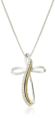 -. Title : Sterling Silver and 14k Yellow Gold Diamond Twist Cross Pendant Necklace (1/10cttw, I-J Color, I2-I3 Clarity), 18"
