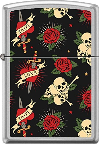 -. Feature : Zippo Tattoo Art Roses Hearts Love Dagger Skulls / Satin Chrome Finish / Brand New in Original Zippo packaging / Made in the USA / Zippo Liftetime Guarantee