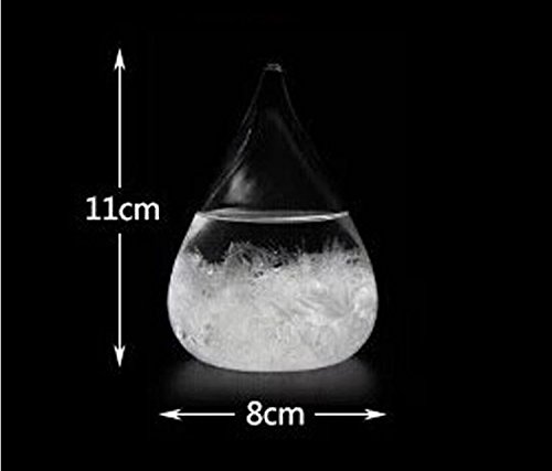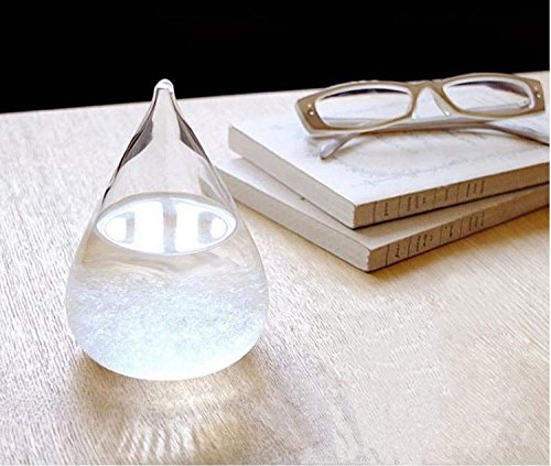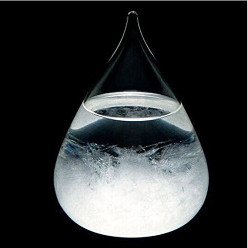 The cool new and modern Storm Glass is a natural way to forecast the weather. The sealed glass container holds a mixture of distilled water, ethanol, and camphor that changes in appearance based on forthcoming weather conditions.,The appearance of the liquid transforming from clear to cloudy to crystal flakes predict whether the weather will be clear, cloudy, or filled with thunderstorms.