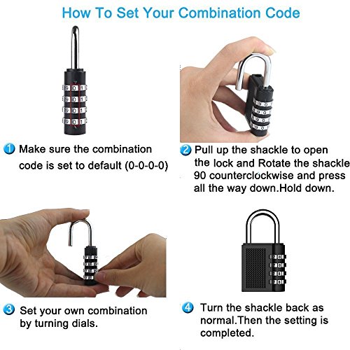 -. Feature : 2 PACK - Set includes 2 zinc alloy 4-digit resettable combination travel locks / Sturdy Construction - High Quality of combination lock, Zinc alloy and plated Steel will keep your Stuff in Safe / Keyless lock - Hassle free when you left the key at home or elsewhere / Good Security - 10000 combination codes formed by 4 digit numbers make it safe enough for light duty use / 100% Satisfaction Money-Back Guarantee - Order Combination Lock without any risk for you. MONEY BACK or Replacement Warranty for two years