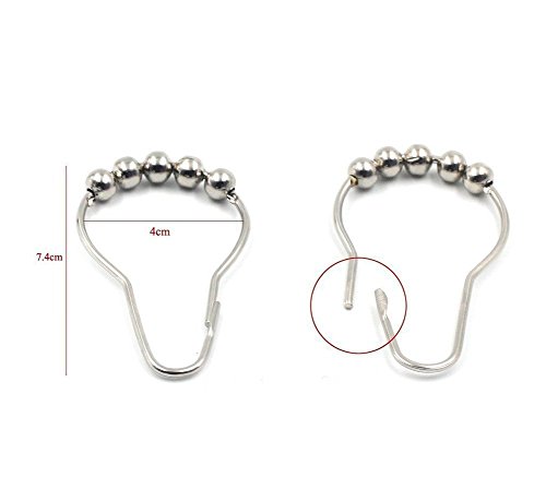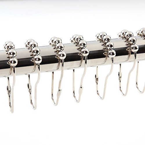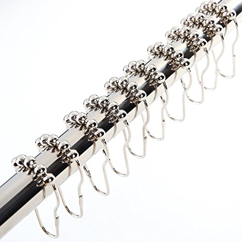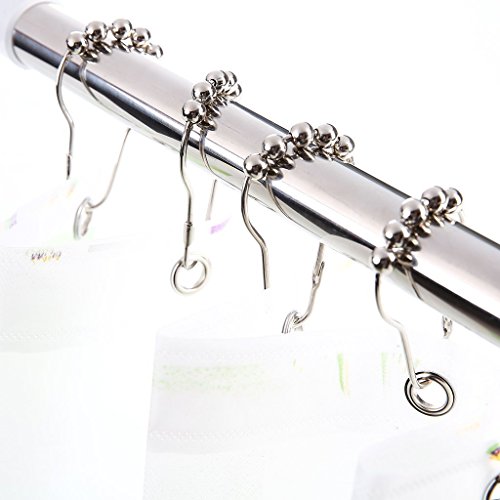 Shower Curtain Hooks, Double Shower Curtain Rings Stainless Steel Rustproof Metal Double Glide Shower Hooks Rings Chrome for Bathroom Shower Rods Curtains, Polished Chrome, Set of 12 Hooks