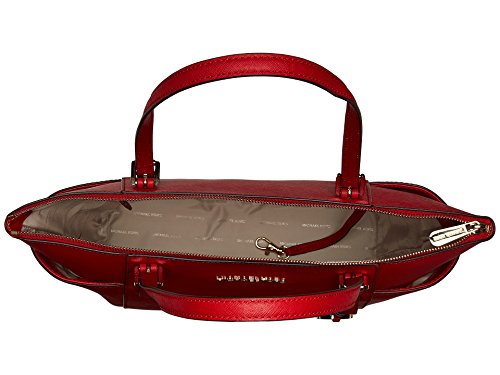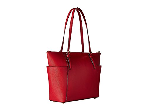 Product Description Jet setters, take note: this sophisticated, multi-tasking tote is the ultimate travel accomplice. Crafted from Saffiano-a matte leather that's both distinctive and durable-it evokes a chic, away-we-go attitude. A plethora of pockets keeps you organized, while the top-zip design ensures your essentials stay put, wherever you may go. 0