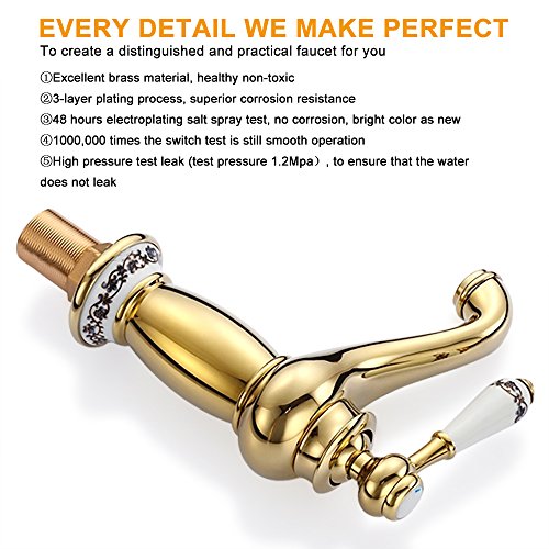 -. Title : Luxury Bathroom Faucet Gold Finished , Single Handle Single Hole Mixer Tap Bathroom Sink Faucet with Hot and Cold r Water Supply Lines(Easy Install)