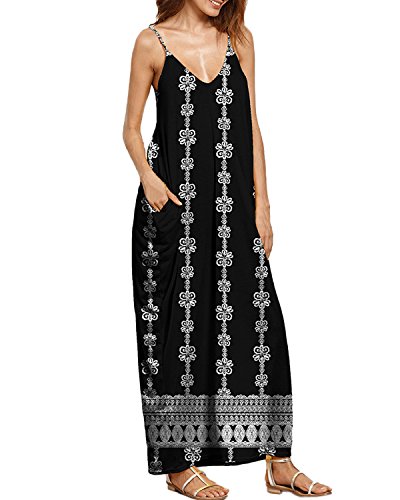Auxo Women's V Neck Spaghetti Straps Beach Boho Long Maxi Dress *Size Chart: