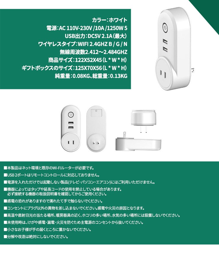 | 商品名 | スマートプラグ【Smart Socket】遠隔操作プラグ ワイヤレス USB充電 |