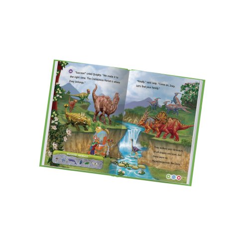 Explore the prehistoric world and help Leap and Professor Quigley reunite an adorable dinosaur with her family in this interactive LeapReader book.