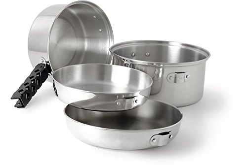 Studio : GSI Publisher : GSI Binding : Sports Product Description The small stainless cook set includes a 1qt and 1.5 qt pot. The 6.5" and 7.5" fry pan/lids have been designed to fit the pots and also nest together with a gripper into a unique compact cook set. These features make for a lightweight extremely durable cook set that is anti-corrosion and will not rust. It is compact so easy to store. The stainless is very easy to clean and will last forever. The Glacier Stainless® cook set epitomizes value and versatility. 0