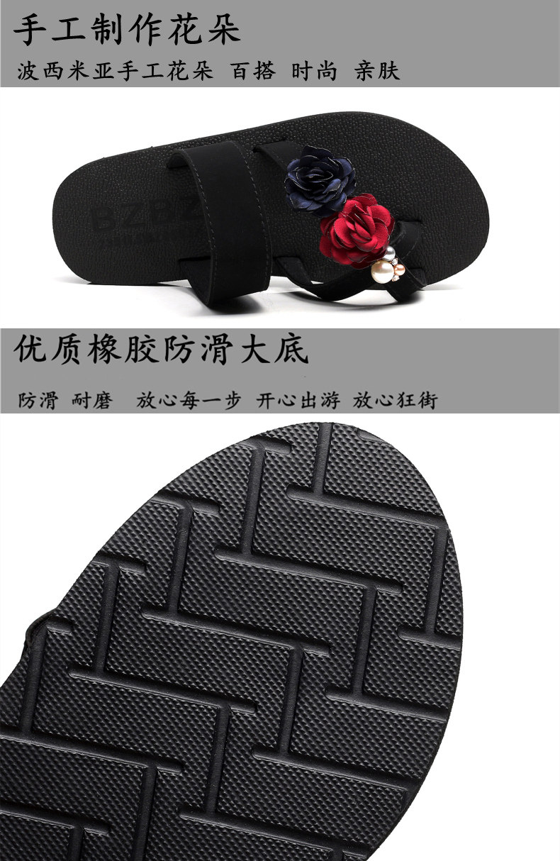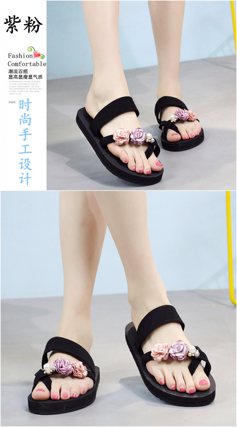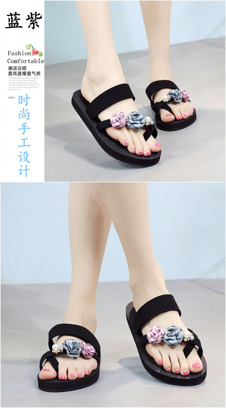 平底防滑外穿人字拖鞋甜美海边花朵沙滩鞋厚底时尚凉拖鞋韩版新款
