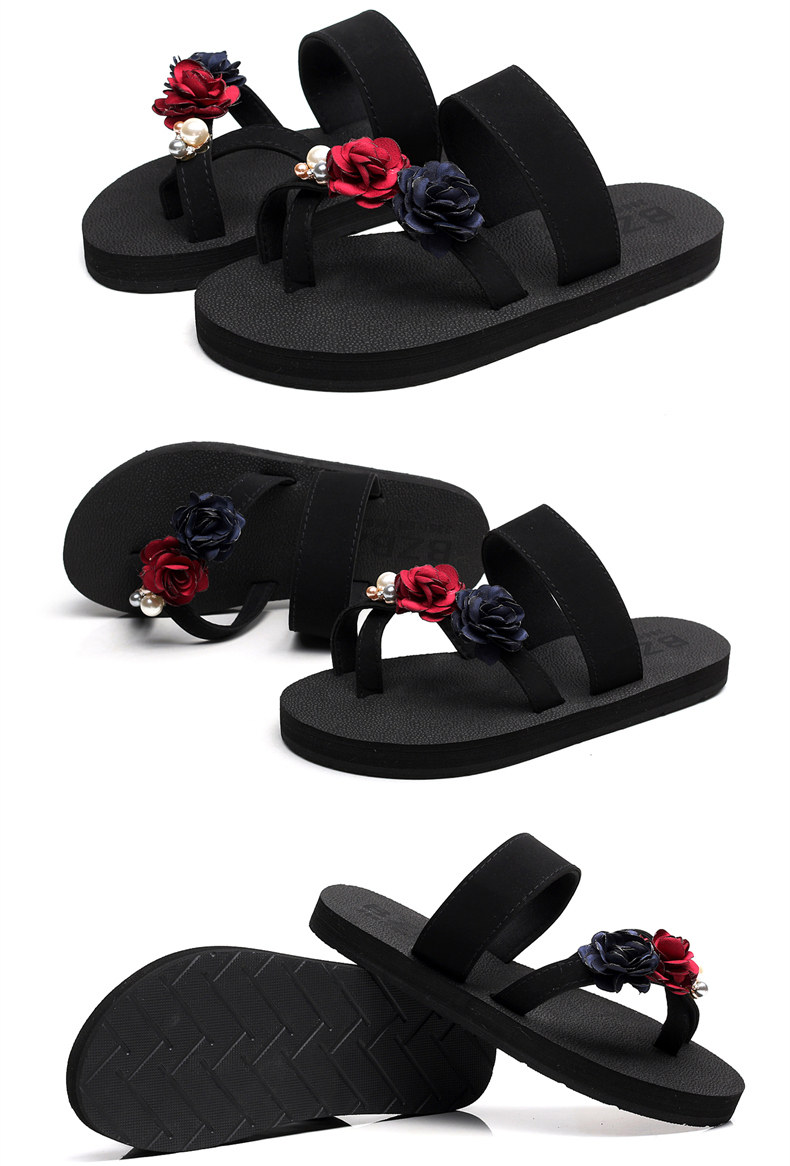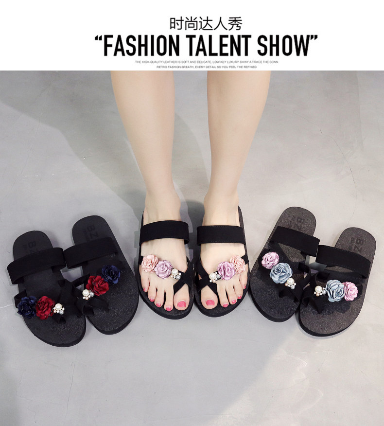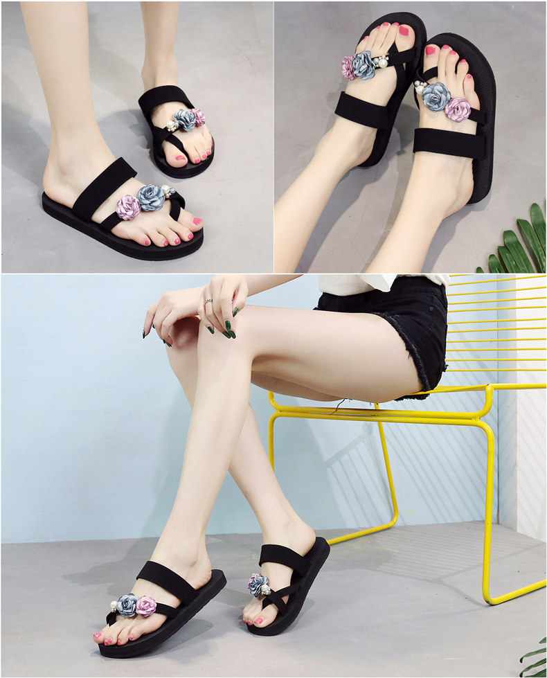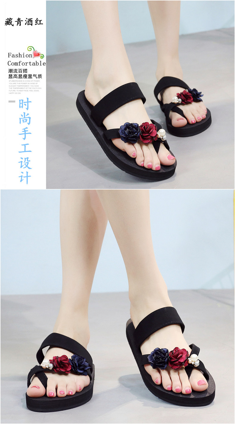 平底防滑外穿人字拖鞋甜美海边花朵沙滩鞋厚底时尚凉拖鞋韩版新款