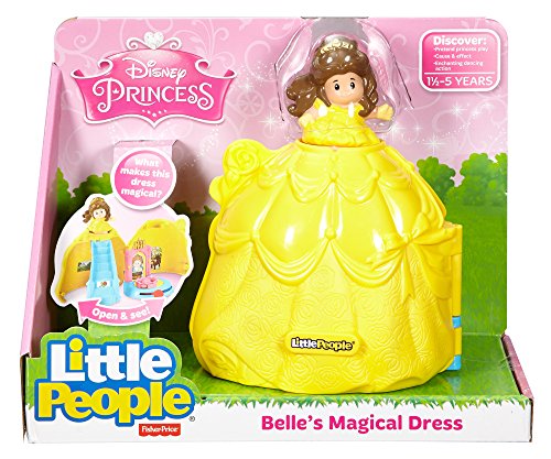 -. Binding : Toy -. Brand : Fisher-P.R.Ice -. EAN : 0796890126912 -. Feature : It's magic! Open the dress to reveal a grand staircase and the ballroom scene from Disney's Beauty & The Beast / Place Belle on dance floor and move rose back & forth to make her "dance" / Beast or P.R.Ince? Spin picture on back wall to decide / Everything stores inside the sparkly ball gown / Includes ball gown playset and Disney P.R.Incess Belle figure by Little People -. IsAdultProduct : 0 -. Label : Fisher P.R.Ice -. Manufacturer : Fisher P.R.Ice -. Model : DLF84 -. MPN : DLF84 -. PackageQuantity : 1 -. PartNumber : DLF84 -. ProductGroup : Toy -. ProductTypeName : TOYS_AND_GAMES -. Publisher : Fisher P.R.Ice -. Studio : Fisher P.R.Ice -. Title : Fisher-P.R.Ice Little People Disney P.R.Incess, Belle's Magical Dress -. UPC : 885732313778 -. Warranty : No Warranty
