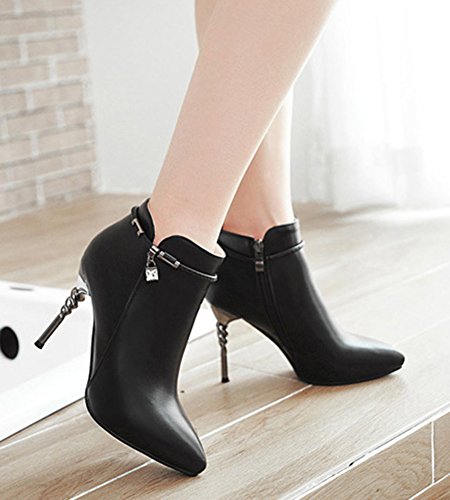 Binding : Apparel Product Description This pair of shoes is for women, girls, juniors and young ladies. You will look chic and stylish when wearing them. The heels measure 3.9 inches. You will feel comfy in their high heels. This pair of shoes features ankle high and solid pu leather upper. You will look sexy in their pointy toe design. Its simple classic design will offer you an extravagant simplicity. It's convenient for you to wear in their side zipper closure design. The sole is made of good rubber. You will feel comfortable in their soft bottom. You can wear them to the office, school and shopping mall. They are of high quality and durable. We promise we will provide our customer with the best quality and lowest price. Your pleasant shopping experience is our eternal pursuit. Waiting for your coming! 0