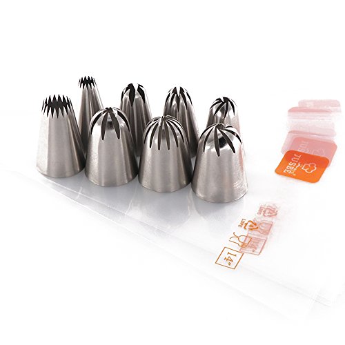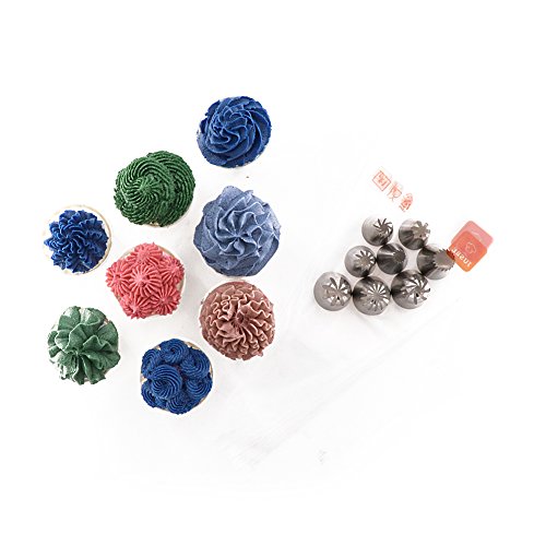 - Extra Large Decorating Tip: include open-star tip, rose tip, closed-star tip, swirl tip, French tip, cupcake tip, flower piping tip, these are some of the biggest cake tips you’ll find anywhere, great cake decorating supplies;