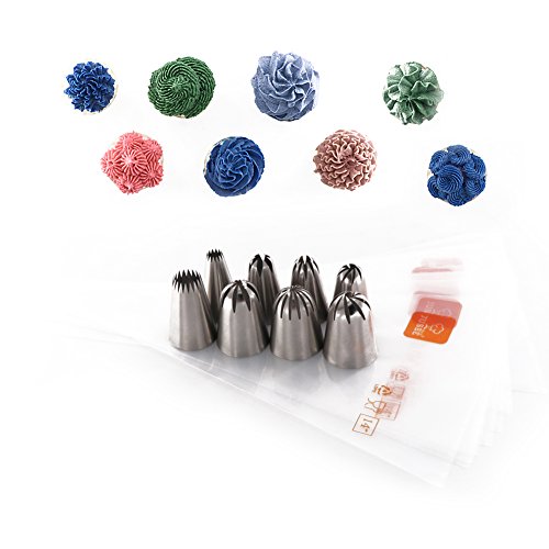 Cake Decorating Icing Piping Tip Set, 8 X-large Decorating Tips for Cakes, 10 Thickened Disposable Pastry Bags