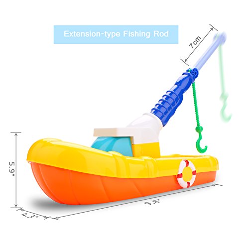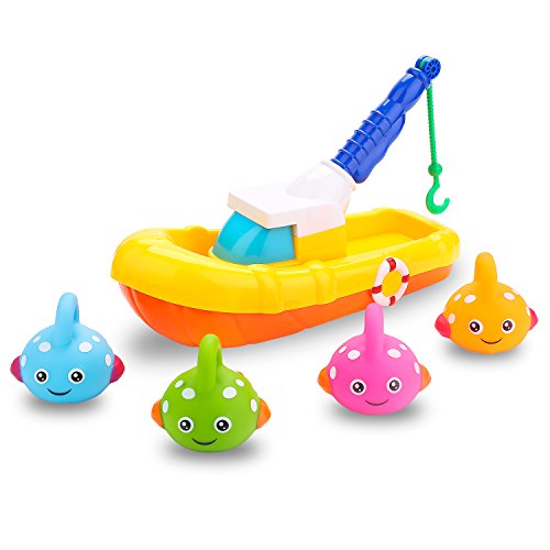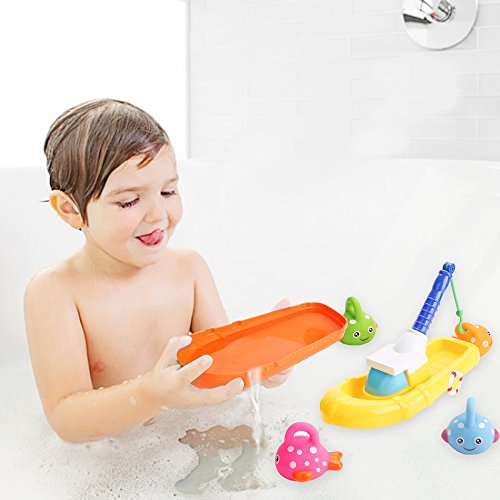 Bath Toys, Fishing Game Boat with Four Floating Fishes, Bathtub Toys for Toddlers Kids Boys