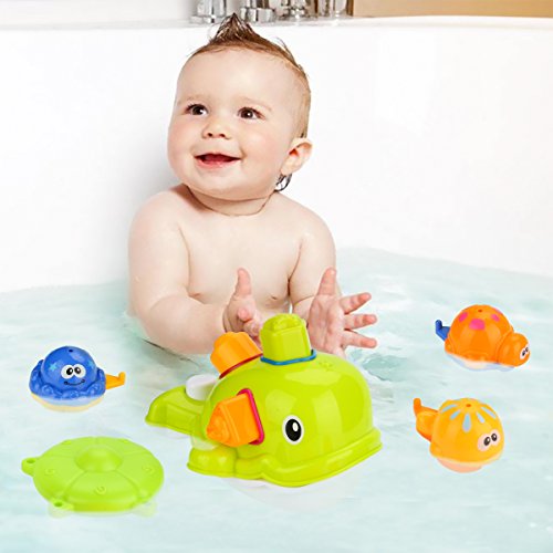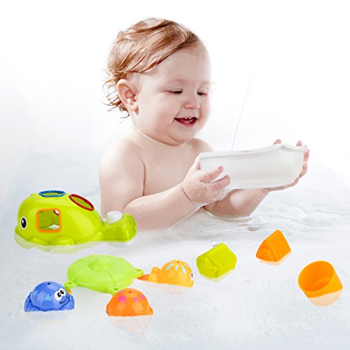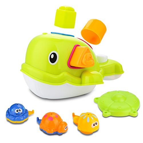 A VARIATY OF PLAY METHOS: Toy Choi's educational whale bathtub toy set offers a wide range of plays such as shapes matching game, scooping and pouring water, water pumping system for spout of water, linking game and stacking game and etc.