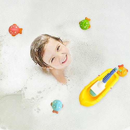 PERFECT GIFT BATH TOYS SET: This great bath toys set contains 4 adorable floating fishes and one separable fishing boat. Your kids will love this and be fascinated to play with it.