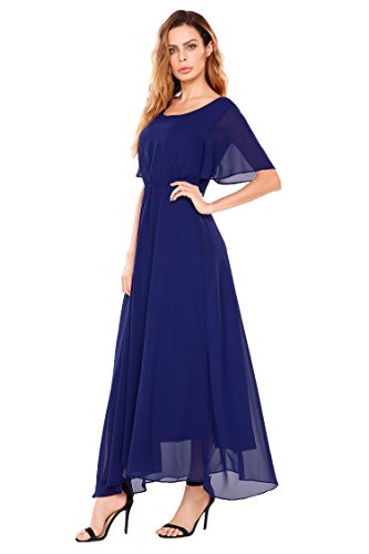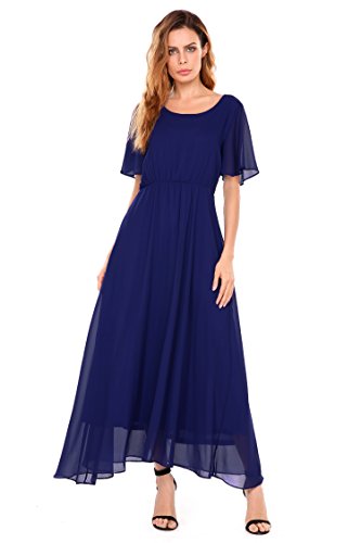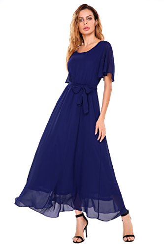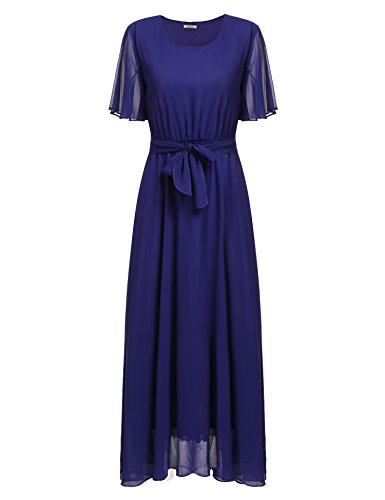 Features: Flutter Sleeve, Solid Color, Elastic Waist, Full Length, Pullover. Bridesmaids Dress, Formal Dress with Belt.