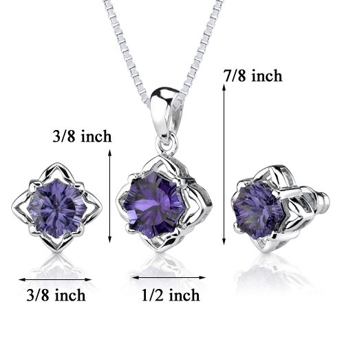 -. Title : Simulated Alexandrite Pendant Earrings Set Sterling Silver 10.00 Carats Snowflake Shape