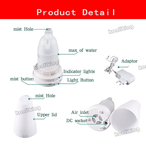 - 2)Aroma Humidifer WONDER ROMANTIC LED LIGHTS: Changing light color automatically, or you can choose one color as you desire; Decoration: warms atmosphere in the room by adding perfume or essential oil in the atomizer colorful our life