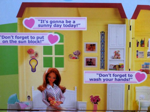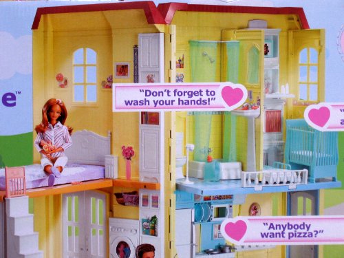 -. Binding : Toy -. Brand : Barbie -. Color : Colors may vary from those shown on the box. -. EAN : 0027084142860 -. Feature : Barbie Happy Family Neighborhood Sounds Like Home Smart House is a 2004 Mattel production. / INCLUDES: Sounds Like Home Smart House, 3 x Neighborhood Friend Dolls each Doll approx. 3-1/4" tall, Furniture for House, & Stickers for your Scrapbook. Requires 3 "AA" Alkaline Batteries (NOT included) / Smart House has 10 Sensors & 100+ Phrases & Sound Combinations that know where you're playing for realistic; the House will play along with you. Everyday sounds in each room & 5 Lights makes it feel more like realistic play. / ADULT ASSEMBLY REQUIRED. For ages 3+ Years. Box approx. 32"L x 16"W x 6.25"D. See specific Information & Details below in PRODUCT DESCRIPTION. Sizes are approximate & may vary. / For Box Condition Information, see CONDITION NOTE or Email Seller for details. -. IsAdultProduct : 0 -. Label : Mattel -. Manufacturer : Mattel -. Model : C7538 -. MPN : C7538 -. PackageQuantity : 1 -. PartNumber : C7538 -. ProductGroup : Toy -. ProductTypeName : TOYS_AND_GAMES -. Publisher : Mattel -. Size : Box approx. 32" X 16" X 6.25"; Smart House intended for Fashions Dolls approx. 2.5"-12" tall. All sizes are approximate & may vary. -. Studio : Mattel -. Title : BARBIE Happy Family SOUNDS LIKE HOME SMART HOUSE Playset w LIGHTS & SOUNDS (2004) -. UPC : 027084142860
