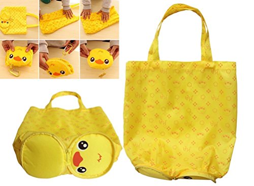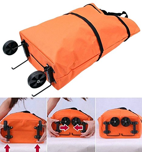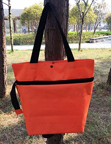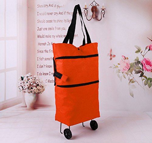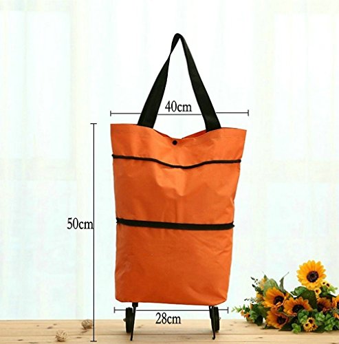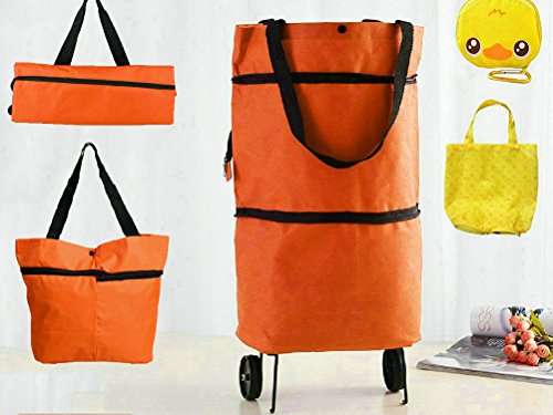 Cocobuy 2 Pack Foldable Shopping Bags, Oxford Fabric Trolley Shopping Bag with Wheels + Cartoon Foldable Shopping Handbag (Orange + Yellow)
