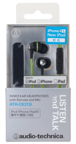 원본상품명: audio-technica iPod/iPhone/iPad?用インナ?イヤ?ヘッドホン(ブラックグリ?ン) ATH-CK313i BGR