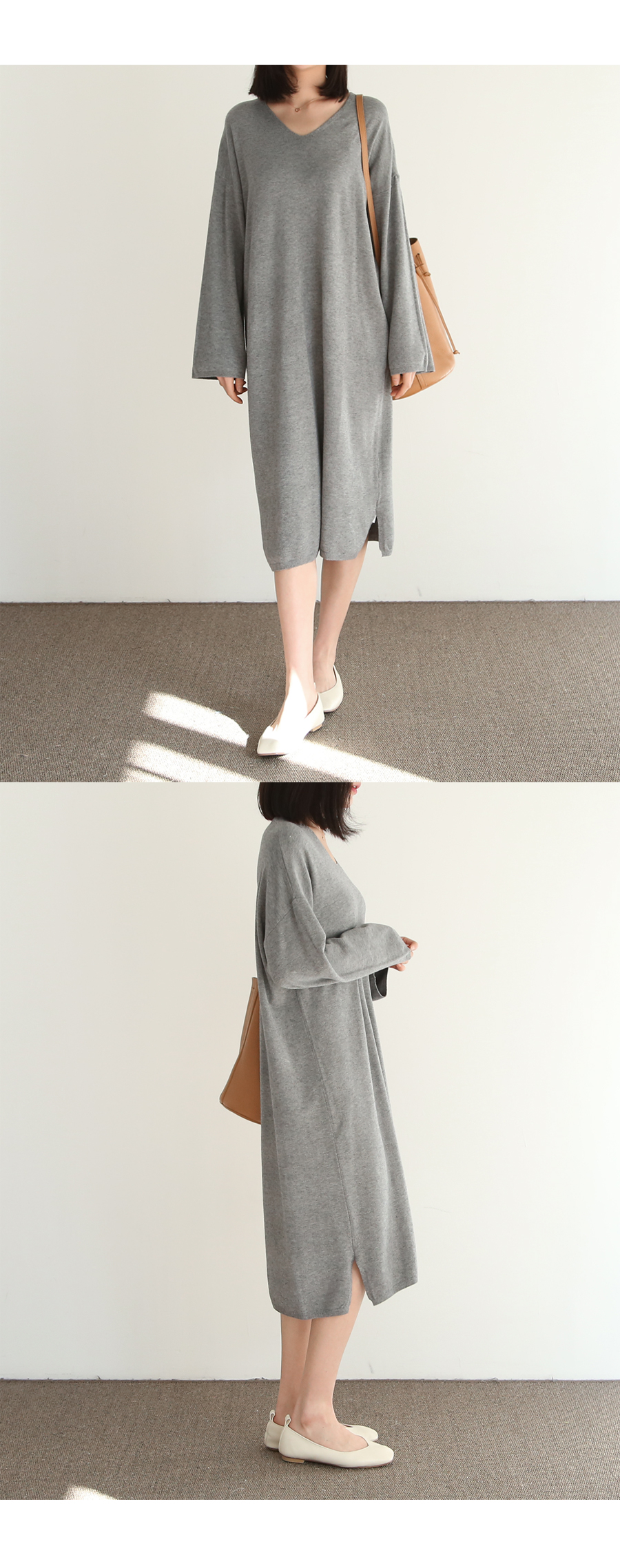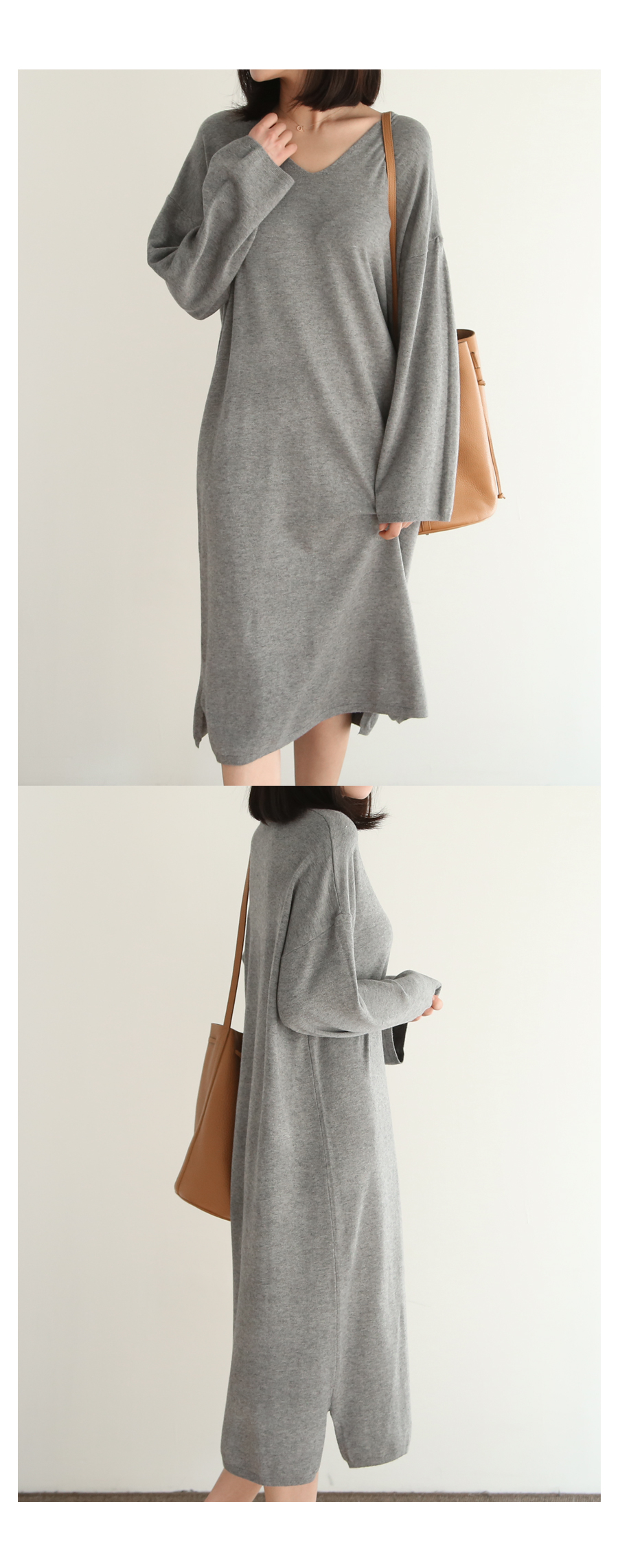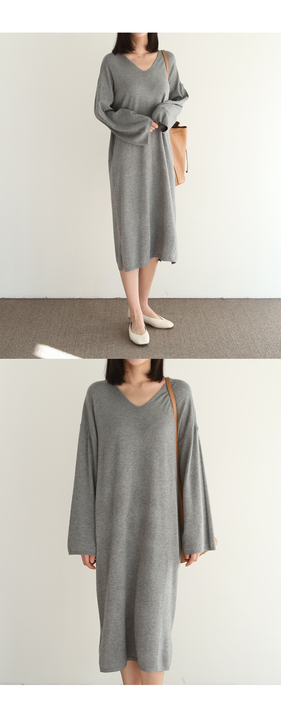 여성스러운 분위기와 부드러운 촉감이 돋보이는 니트 롱원피스입니다