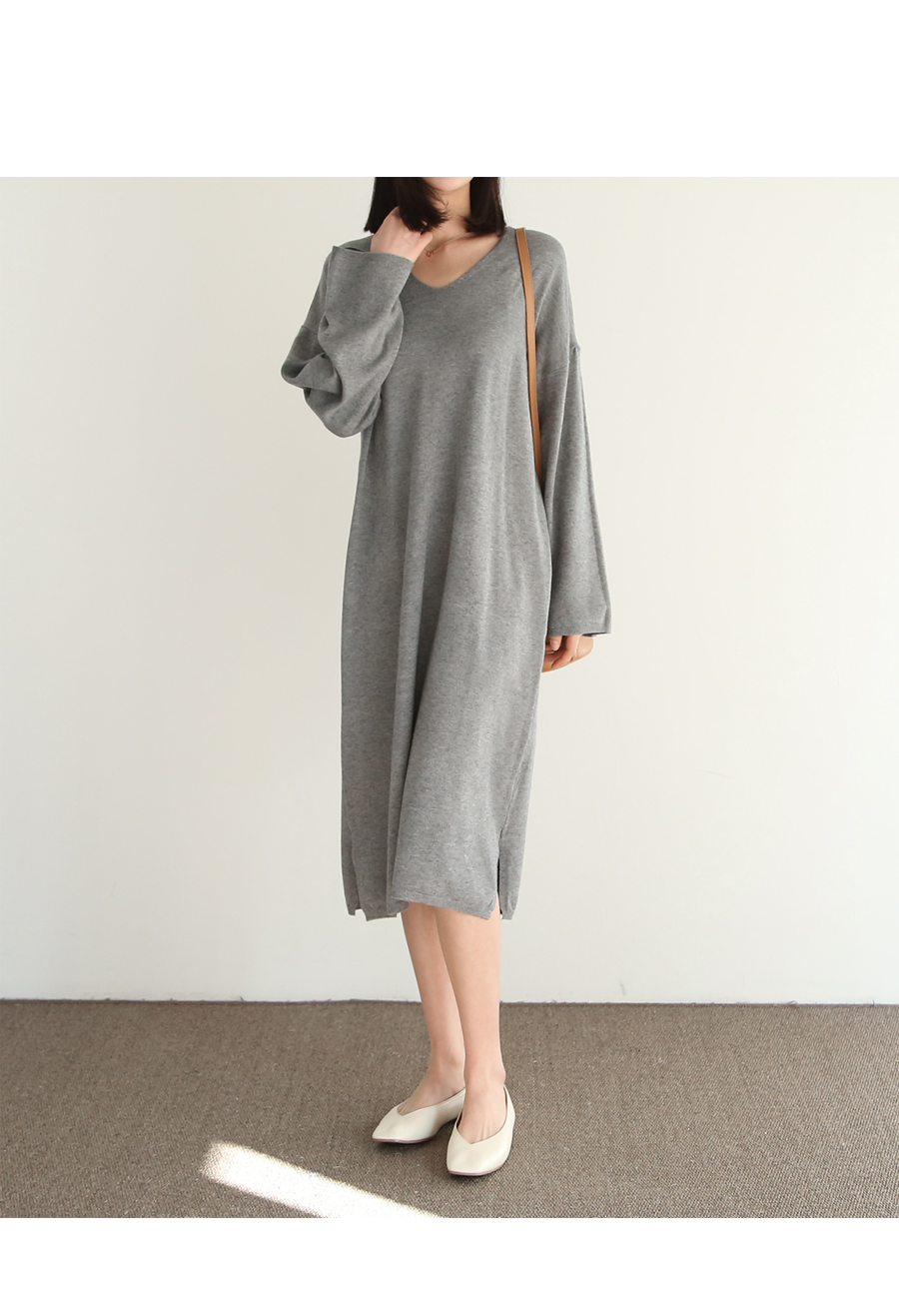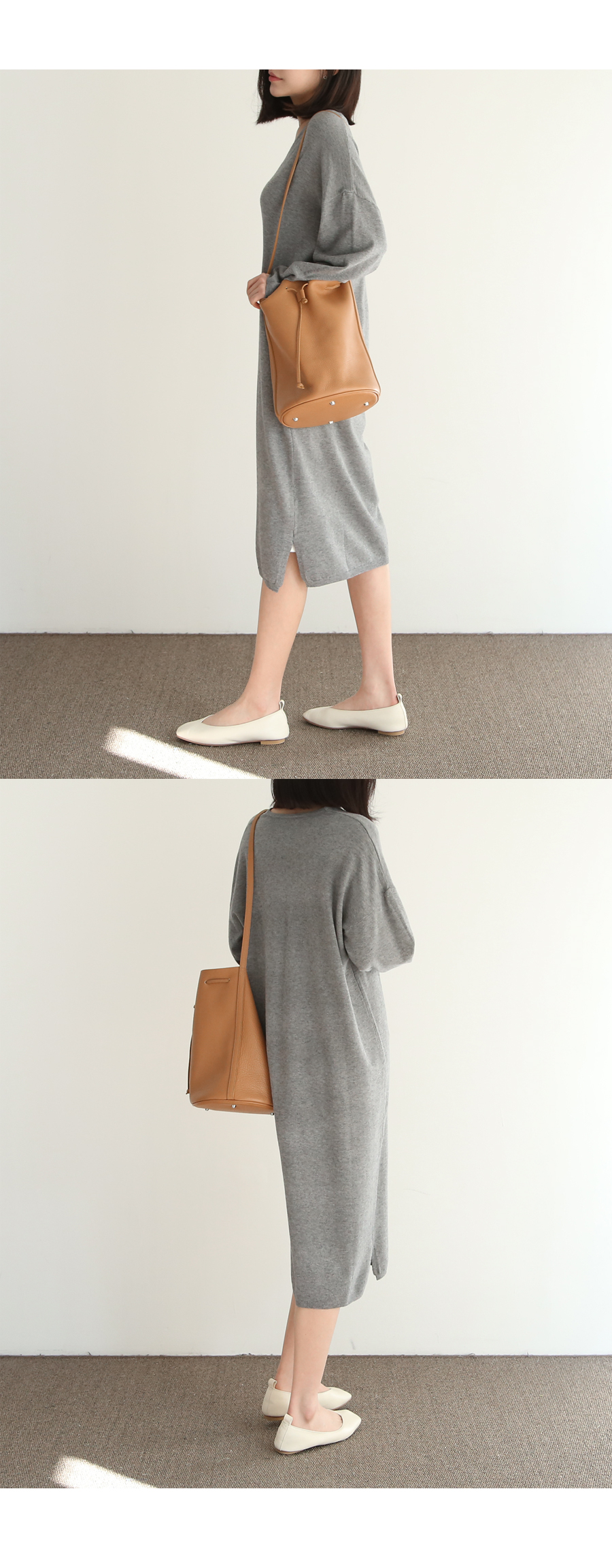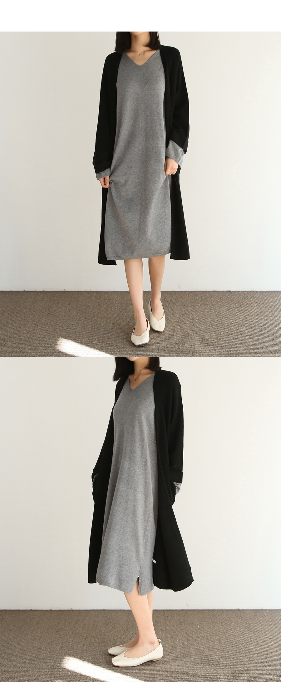여성스러운 분위기와 부드러운 촉감이 돋보이는 니트 롱원피스입니다