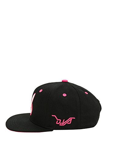 Binding : Apparel Product Description Game over! You'll look like a total badass in this D.Va themed snapback hat from Overwatch. The black cap features D.Va's pink white bunny logo embroidered on the front, a pink under bill, pink details and a white snapback closure. 0