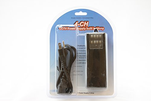 -. Binding : Electronics -. Brand : 5 Star Cable -. EAN : 0840449102602 -. Feature : Simple solution for CCTV power supply / 4 Channel 5 Amp Distribution System / Built in 6A PTC Fuse for Maximum Protection, Adjustable Output Voltage for long distance transition, / Input: 90V-264VAC 50/60Hz; Output: 12V-13.8VDC 5A / Worldwide voltage input, 90V-264VAC. LED indication light -. Label : 5 Star Cable -. Manufacturer : 5 Star Cable -. MPN : BP0004/5-4PTC -. PackageQuantity : 1 -. PartNumber : BP0004/5-4PTC -. ProductGroup : Photography -. ProductTypeName : CAMERA_OTHER_ACCESSORIES -. Publisher : 5 Star Cable -. Studio : 5 Star Cable -. Title : UL Listed 4 Channel CCTV Camera Power Supply 5 Amp Distribution Power Supply 90V-264VAC Input to 12V-13.8VDC Output with 6A PTC Fuse -. UPC : 840449102602