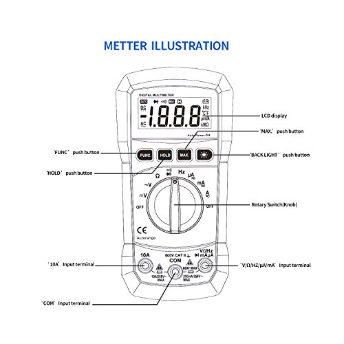 - Auto-Ranging & Auto-Power Off: 2000 counts auto-ranging multimeter accurately measure AC/DC voltage, current, frequency, resistance, capacitance, diode etc.