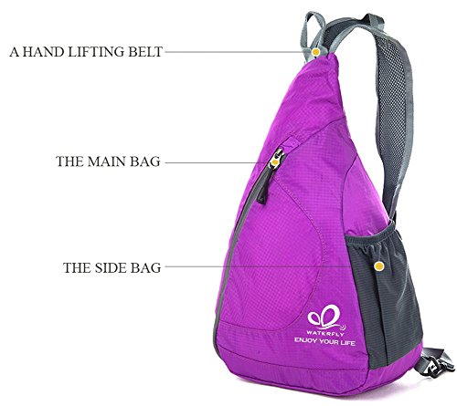 WATERFLY ENJOY YOUR LIFE We focal on outdoor bags. The best quality is our culture. ?Description: ?Five color: Blue, Black, Olive, Pink, Purple. ?It is rain proof. Please do not immerse it fully in water. ?The length of the shoulder strap is from 22 to 39.3 inches. The length of the waist strap is from 9.84 to 19.68 inches. ?The main bag is 9.84(length)*4.72(width)*15.35(height) inches,The triangle is 9.84*14.17*14.17 (inches).It can hold iPad 2/3/4/5/6. ?The side mesh pack is 5.9 inches height. It can hold 3 inch(diameter) bottle, it is flexible to be large and back to small. It is easy to hold coca-cola. ?The cross body pouch is 2.75*4.92*0.58 inches, it can hold 4.7 inches phones, Like iPhone 5. ?The back has a triangle bag, It is 6.69*6.69*9(inches),it can hold iPhone 6 plus, wallet and card. ?The inner bag is 8.2*6.3*0.78 inches, It is also the size after folding. The inner bag can hold your bank card and some valuable items. ?Package included: 1*Crossbody Sling Bag 0 |