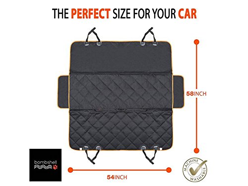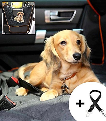 -. Feature : HIGH PROTECTION FOR YOUR CAR, LUXURY FOR YOUR KIDS AND YOUR PET - our dog seat cover / protector WITH FREE ADDITIONAL PET SEAT BELT keeps your family comfortable and safe during a car ride whilst preventing any scratches, dirt and spills. So you can keep your car's upholstery in perfect condition - NO MORE having to worry about sandy paws and feet or wet fur and sticky fingers after a trip to the park or the beach! / EASY TO INSTALL, USE and CLEAN - it will take you just a few seconds to install our car seat cover and secure it in place with our adjustable straps and custom seat anchors. It also quickly converts from a HAMMOCK to a STANDARD seat cover to cater for messy two legged children. NO MORE having to hand wash the back car bench. TO CLEAN simply remove the seat cover and machine wash! Moreover, the seat cover folds easily and can be EASILY stored in the FREE 12 inch DRAWSTRING storage bag included / HIGH QUALITY 100% WATERPROOF, NON-SLIP - Made from A-1 grade 600D PU Oxford BREATHABLE waterproof fabric AND PU infused for an ultra-luxury feel; critical parts of back seat cover are REINFORCED with extra layers of fabric & threading for extra durability and comfort. There are 4 Velcro openings for seat belts, & CHILD CAR SEATS. The fabric contains NO heavy metals / dyes AND our unique Non-Slip SILICONE backing together with the custom seat anchors means the cover does not budge, slip or slide / FREE BONUS PET SAFETY BELT - Allows your pet to sit, lay down, or stand freely in a car without distracting the driver. DESIGNED IN THE USA for larger AMERICAN CARS AND SUVS our unique design PERFECTLY FITS all of STANDARD USA cars, trucks & SUV's, with 54" width x 58" length and it has extra side flaps to ensure complete seat protection / 100% SATISFACTION, MONEY-BACK GUARANTEE - We offer you 100% risk-free satisfaction guarantee to let you buy with confidence; no questions asked. However, we are quite sure that you will find this cover a steal for this P.R.Ice!