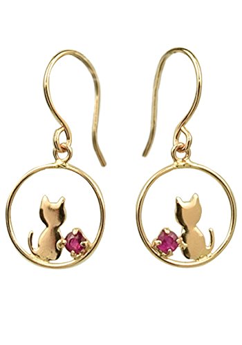 -. Title : [四葉のクローバー]ルビー フックピアス 10金 10K K10 ピンクゴールド 7月 誕生石 猫ピアス キャット レディース 女性:Ma631
