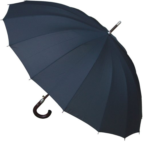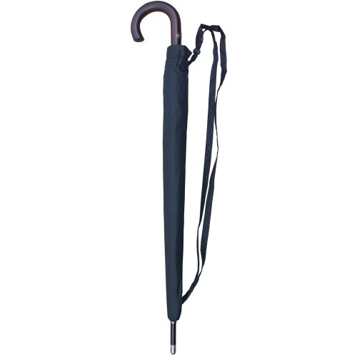 -. Title : RainStoppers W036 46-Inch 16 Panel Wooden Shaft Fiberglass and Metal Frame Umbrella with Wood Hook Handle/Matching Sleeve/Strap, Black