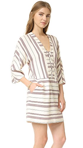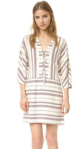 Product DescriptionBohemian wide sleeves and laced up neckline adds an effortless vibe to this striped tunic dress.0