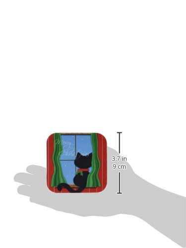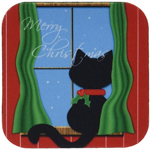 3dRose cst_155257_2 Merry Christmas Cute Black Cat in Snowy Window Soft Coasters, Set of 8