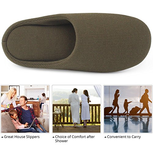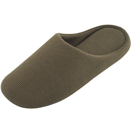 Men's Comfort Knitted Cotton Slippers Washable Flat Closed Toe Ultra Lightweight Indoor Shoes with Non-Slip Sole (M /9-10 D(M) US, Olive for Men)