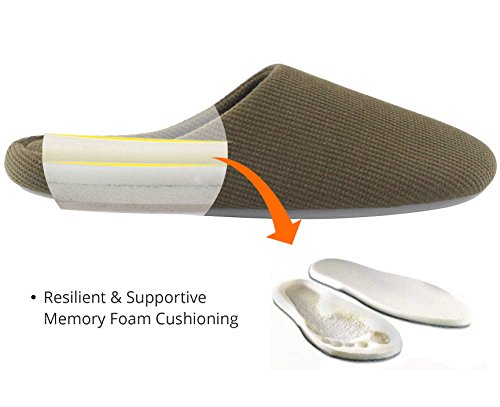 Men's Comfort Knitted Cotton Slippers Washable Flat Closed Toe Ultra Lightweight Indoor Shoes with Non-Slip Sole (L /11-12 D(M) US, Olive for Men)