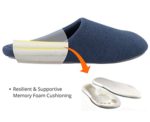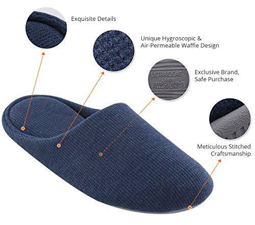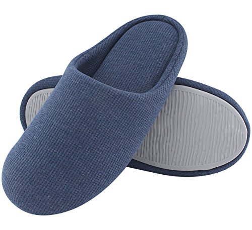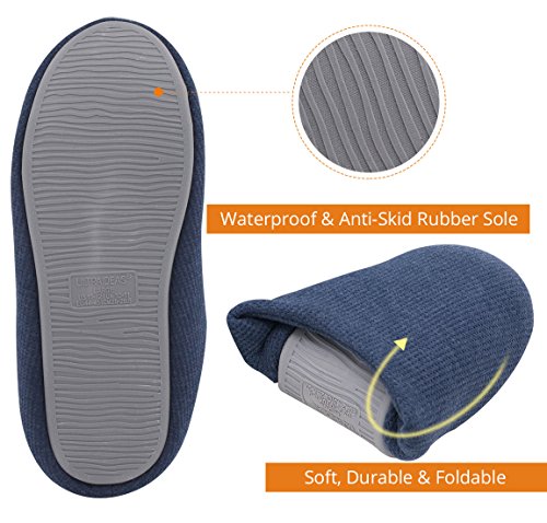 UltraIdeas Comfort Knitted Cotton Slippers for Men and Women Washable Flat Closed Toe Ultra Lightweight Indoor Shoes with Non-Slip Sole (XL /13-14 D(M) US, Blue)