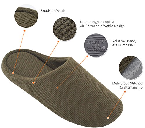Men's Comfort Knitted Cotton Slippers Washable Flat Closed Toe Ultra Lightweight Indoor Shoes with Non-Slip Sole (XL /13-14 D(M) US, Olive for Men)