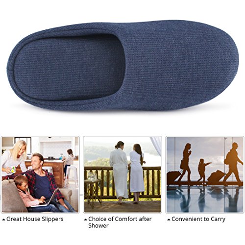 UltraIdeas Comfort Knitted Cotton Slippers for Men and Women Washable Flat Closed Toe Ultra Lightweight Indoor Shoes with Non-Slip Sole (M /9-10 D(M) US, Blue)