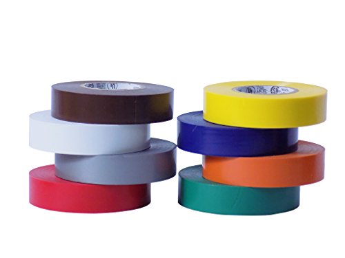 Studio : Tape Brothers Publisher : Tape Brothers Binding : Misc. Product Description All Rolls are UL Listed in the core. Plasticized PVC film with an aggressive rubber resin adhesive in OSHA colors. For cable coding, quick identification of electrical phases, circuits, feeders and branches. Non-flame retardent. Dielectric Breakdown: 9000V. Dielectric strength: 1250v/mil. Tensile strength:18 lb/in. Adhesion: 18 oz/in. Elongation: 200% Temp. resistance: 176 F (80 C). Individualy cello-wrapped and labeled. 1-1/2" (38.1mm) UL/CSA listed core. Technical Details Type Electrical Tape Adhesion : 18 oz/in Elongation : 200% Maximum Temperature : -20°F to 176°F Tensile Strength : 18 lbs/in. Total tape thickness : 7 mil. Made in China *** Rainbow Pack colors are: Gray, Green, Brown, Black, Blue, Pink, Yellow, White, Red, Purple/Violet and Orange. 0