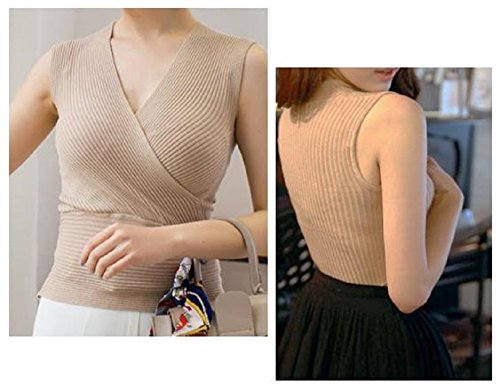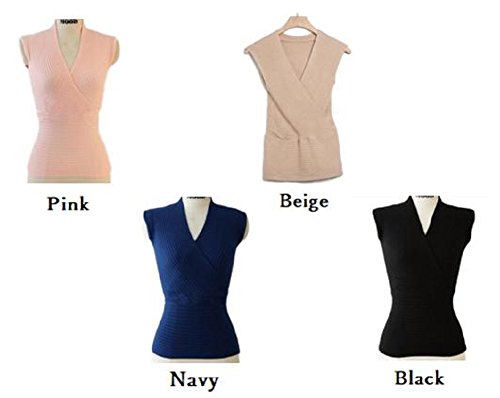-. Title : (ビーツリー) Betree Vネック ノースリーブ リブ ニット カシュクール トップス ストレッチ レディース