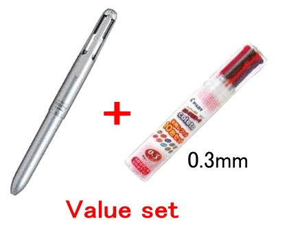 Pilot Hi-tec-c Coleto Lumio 4 Color Gel Ink Multi Pen Body Component - Silver & Multi Pen Ink Cartridge - 0.3 Mm - 10 Color Starter Set