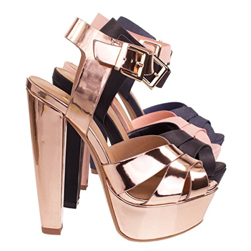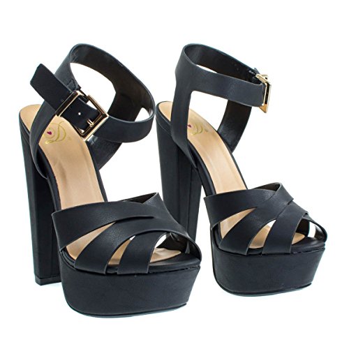 Binding : Apparel Product Description About This Shoes :Stand tall and proud with these towering high platform sandal featuring a super high chunky block heel with a thick platform, the platform help decreased thee stress on your foot by decreasing the angle of the heel. The front is covered in three woven straps and closed with an adjustable ankle buckle. Brand - Delicious Colors Available: Blue Denim, black, Rose Gold Pink Nubuck Occasion: Party Shoe Type: Strappy Shoe Style: Strappy Inner Lining: synthetic Heel Height In Inches - 6.5 Heel Style - Block Toe Style - open-toe Platform Height In Inches - 1.75 Shaft Height In Inches - n/a Circumference Opening - n/a Strap Type - ankle-strap Sole - manmade All Man Made Material unless otherwise stated. Computer/Phone/Table monitors might show color differently because of its quality or calibration, we suggest you look at the photo in at least 3 monitors if you need exact color match of your shoes. 0