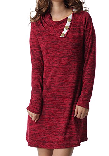 Levaca Women's Long Sleeve Tunic Button Trim Lapel Neck Loose T Shirt Dress, in any single wear, or as a basic shirts,Have a good show in all seasons.