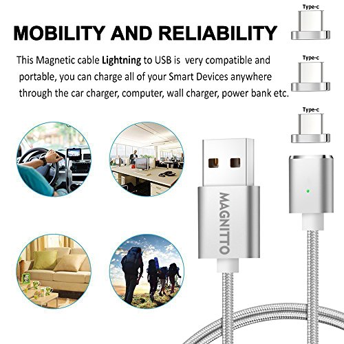 ✔ UNIVERSAL COMPATIBILITY - One for all. 1 magnetic phone charger cable compatible with 3 magnet adapters for iPhone Lightning Android Micro Usb & Work with the new USB Type C devices such as Samsung Galaxy S8 Plus, LG G6 G5, LG V20, Apple New Macbook, OnePlus 3T 2, Google Nexus 5X, Nexus 6P, Google Pixcel, Lumia 950, Lumia 950XL, Moto z, Moto g5, ChromeBook Google Pixel, Asus Zen AiO, Lenovo Zuk Z1, HP Pavilion X2, ASUS ZenPad S 8.0,Huawei P10 P9, Huawei Mate 9, Galaxy S8, Nintendo Switch;