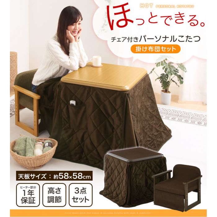 원본상품명:\3,200円引き/ こたつ ?ぎ足 テ?ブル 木製 チェア セット ?掛 椅子 リビングテ?ブル こたつ机 電?こたつ 机 送料無料 イス こたつ布? 掛け布? ハイテ?ブル 一人用コタツ ナチュラル ブラウン 正方形 スクエア おしゃれ 一人用こたつ 60 ミニこたつ